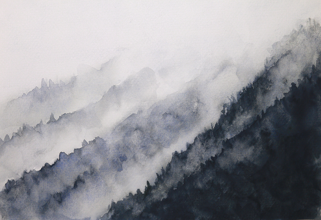 Fototapeta Akwarelowy Las za Mgłą
