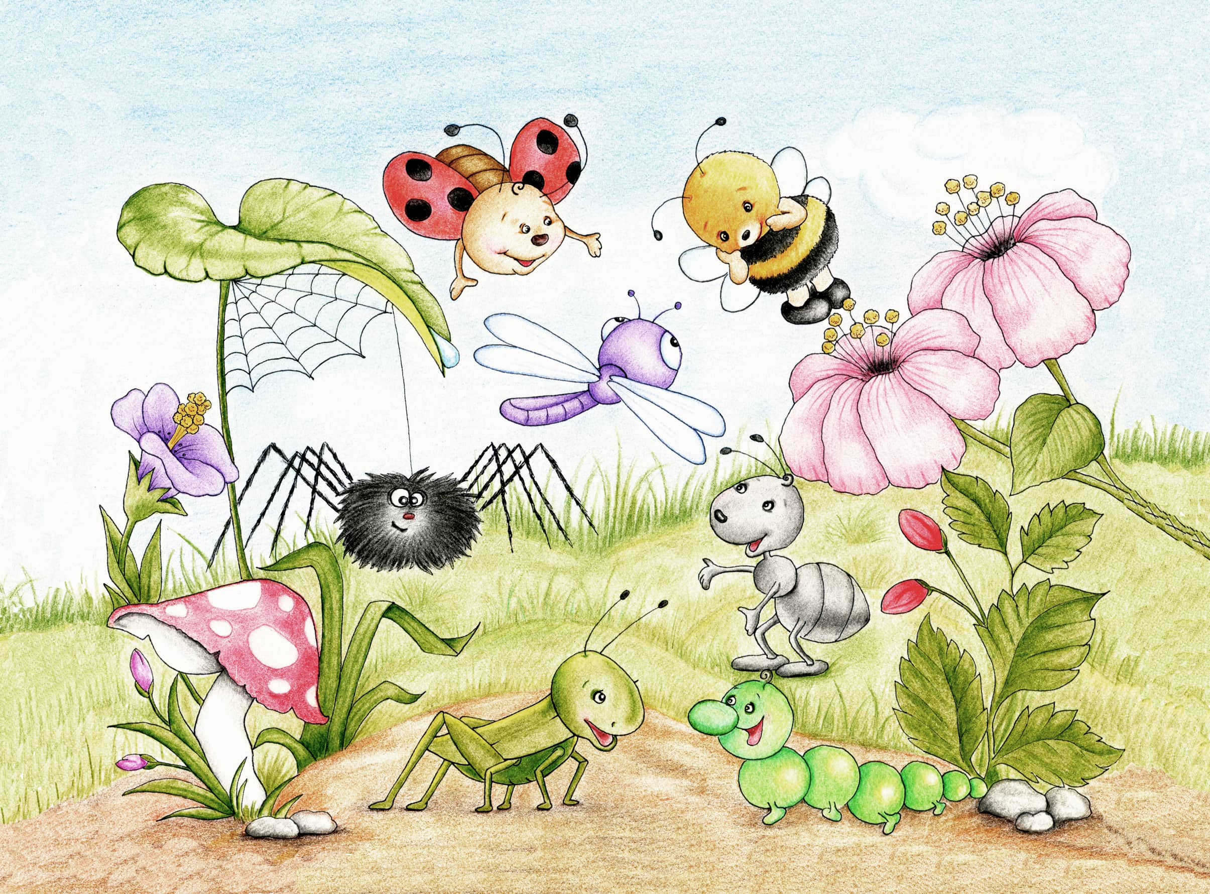Fototapeta „Bajkowa Łąka” – kolorowa przygoda, radosne postacie i magiczny świat owadów