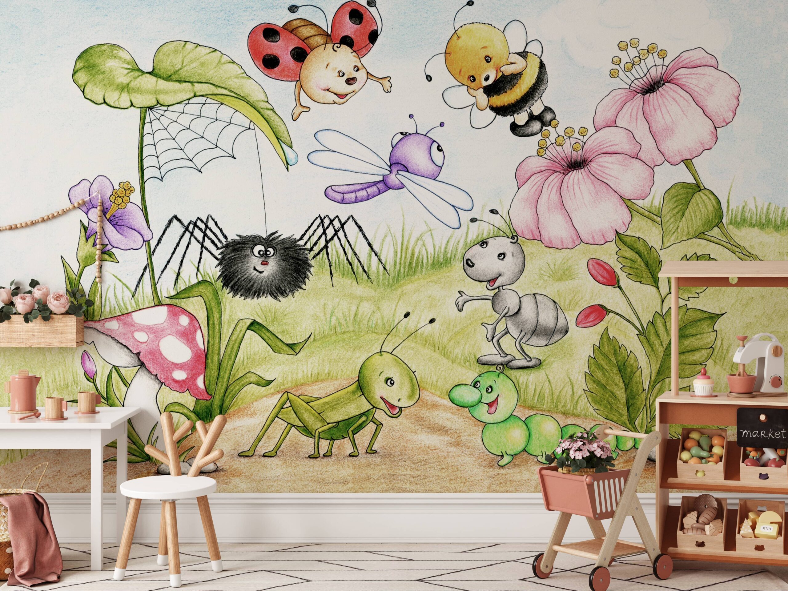 Wprowadź do pokoju swojego dziecka wyjątkowy, bajkowy klimat dzięki fototapecie „Bajkowa Łąka”. Ta urocza, pełna barw i sympatycznych owadzich bohaterów scena przenosi maluchy w świat wyobraźni i zabawy, tworząc przestrzeń pełną ciepła i radości. Delikatne detale kwiatów i przyjazne postacie zachęcają do poznawania natury i rozwijania ciekawości.