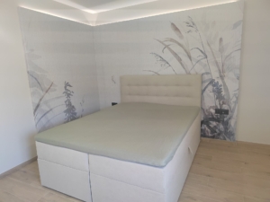 To była niespodzianka i wyszło pięknie – ukochany zadbał o wszystkie detale pomieszczenia, ale najbardziej zaskoczyła mnie fototapeta na ścianie – piękny wzór „Pióropusze na wietrze” – świetnie pasuje ona do całego wystroju i ma w sobie coś magicznego, a ten materiał linen jest cudowny w dotyku 🙂