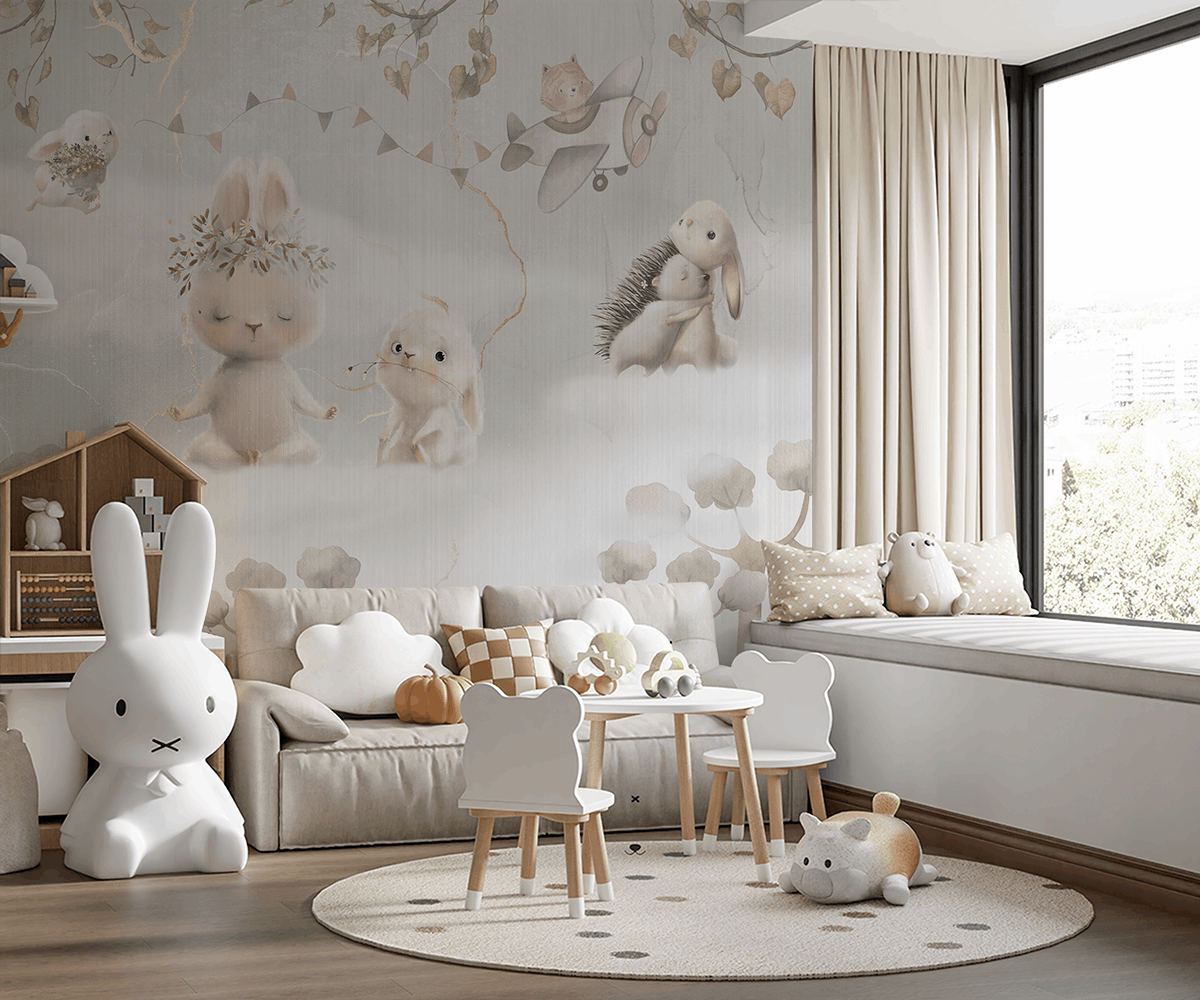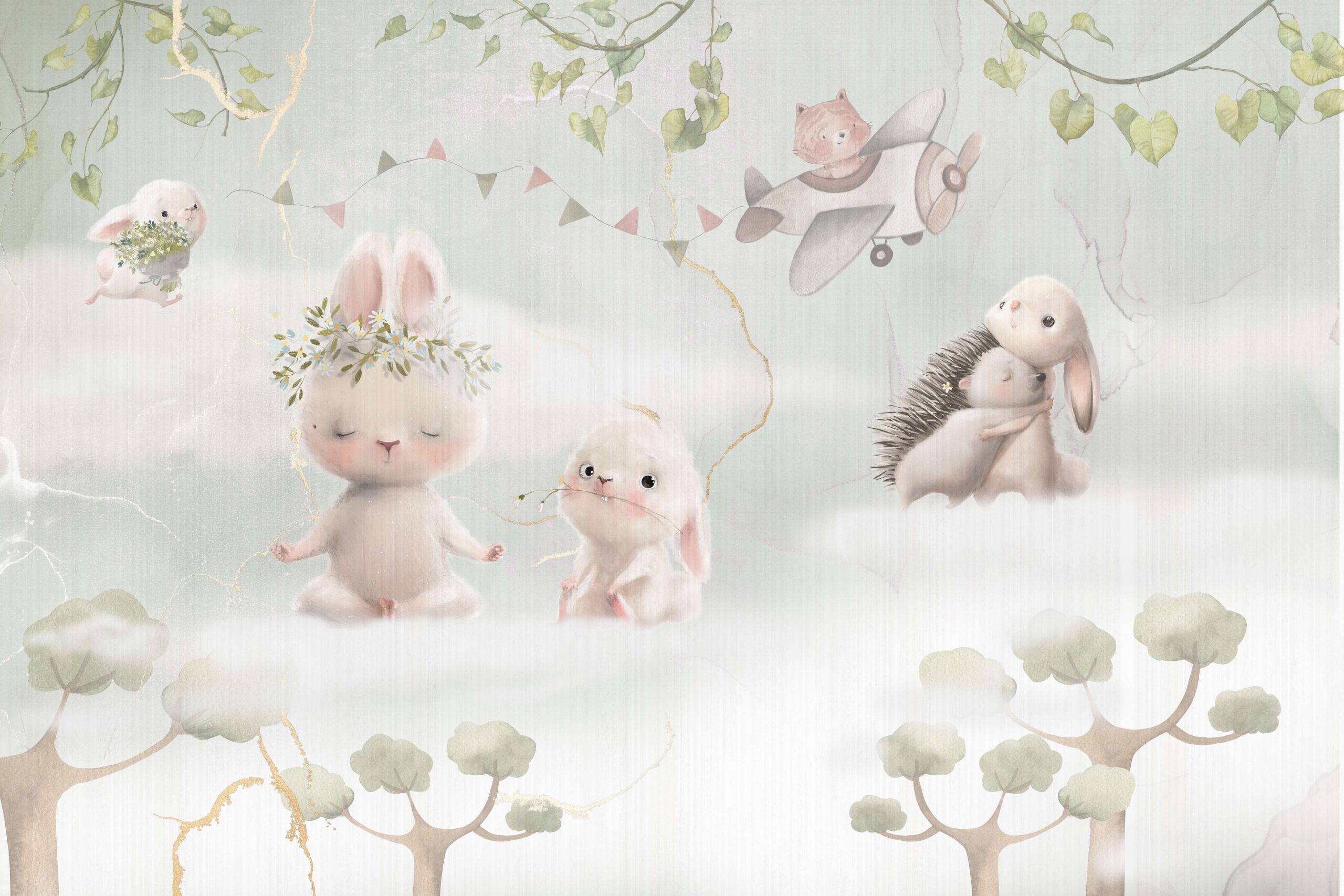 Fototapeta „Chmurkowe Przytulanki” – magiczny świat dziecięcej wyobraźni, miękkość i ciepło przyjaznych zwierzątek