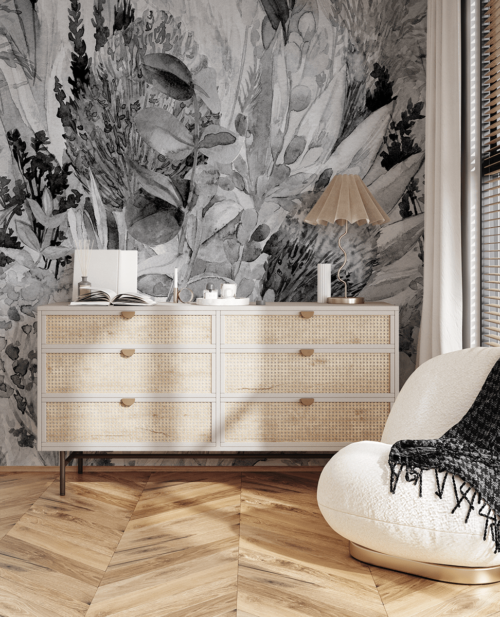 Wprowadź do swojego domu niepowtarzalny klimat dzięki fototapecie „Cienie Natury”. Ten wyjątkowy, czarno-biały wzór roślinny inspirowany akwarelowymi ilustracjami przywołuje spokój i harmonię natury, nadając przestrzeni artystycznego i wyrafinowanego charakteru. Delikatne przejścia tonalne oraz naturalne motywy doskonale komponują się z różnorodnymi stylami aranżacji – od nowoczesnych po klasyczne.