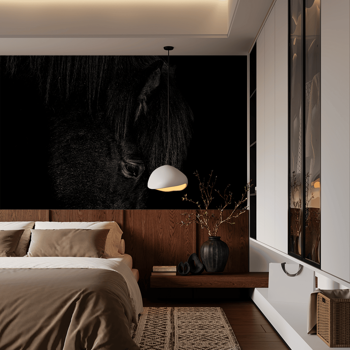 Wprowadź do swojego wnętrza nutę tajemnicy i spokoju dzięki fototapecie „Cisza Nocy”. Ten poruszający czarno-biały portret konia w półmroku emanuje siłą, łagodnością i niezwykłą głębią emocji. Minimalistyczna forma i perfekcyjna gra światła oraz cienia sprawiają, że obraz przykuwa wzrok, jednocześnie tworząc w pomieszczeniu atmosferę wyciszenia i refleksji.