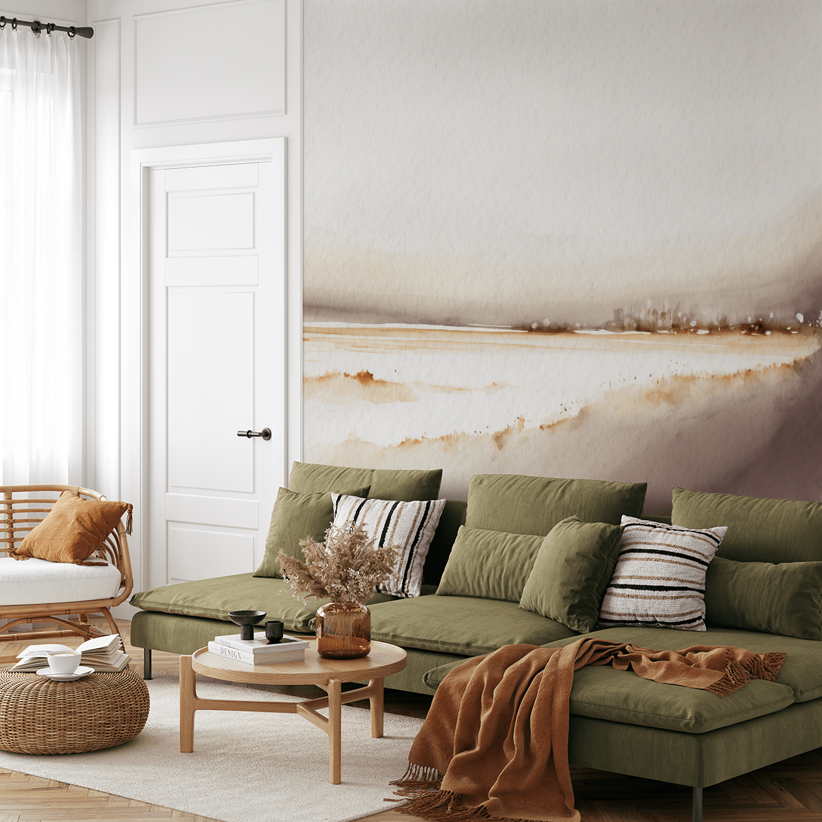 Wprowadź do swojego wnętrza atmosferę spokoju i kontemplacji dzięki fototapecie „Cisza Poranka”. Ten akwarelowy pejzaż w ciepłych, stonowanych tonacjach beżu, brązu i szarości oddaje delikatne piękno porannego światła nad spokojnym brzegiem. Minimalistyczna forma i łagodna kolorystyka tworzą niepowtarzalny klimat wyciszenia i refleksji.
