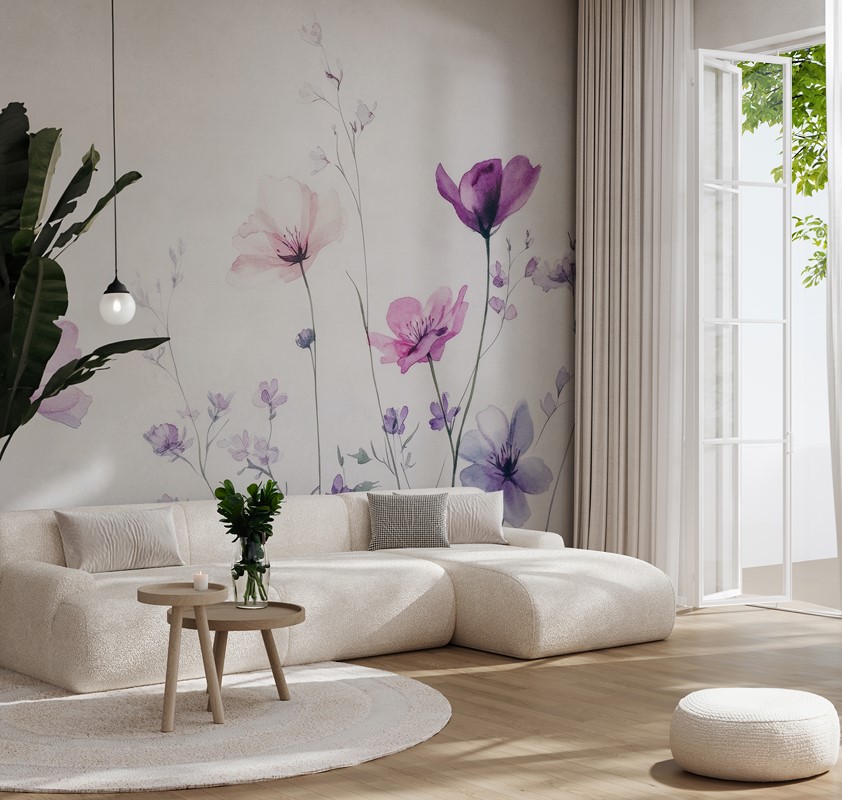 Dynamiczne, akwarelowe detale oraz harmonijna paleta fioletów i różów wprowadzają atmosferę spokoju, wyciszenia oraz subtelnego romantyzmu. Fototapeta „Fioletowe polne szeptanki” to wybór dla osób ceniących dekoracje inspirowane naturą, botanicznym pięknem i elegancją w prostocie.