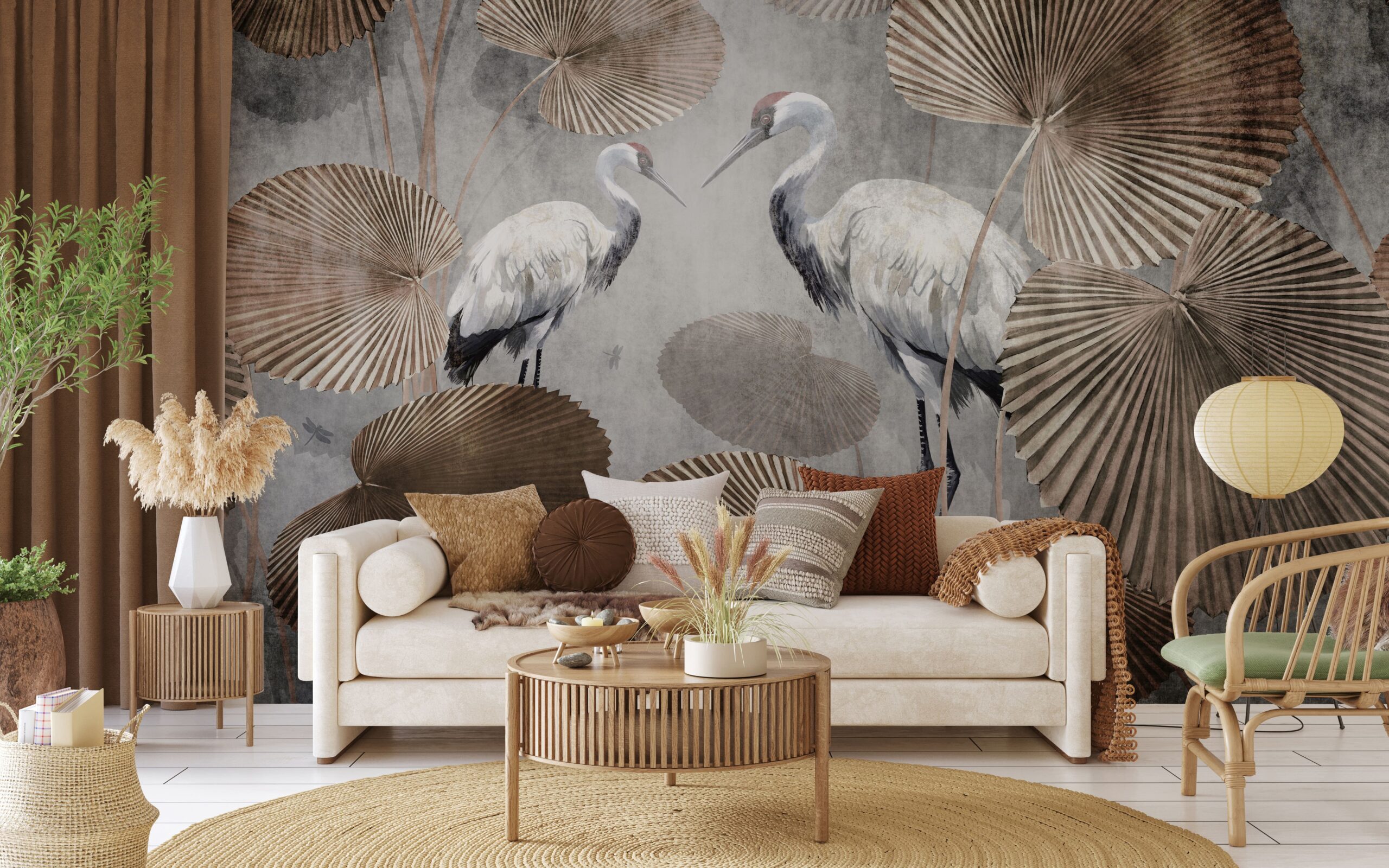 Fototapeta „Harmonia Żurawi” – orientalna elegancja, naturalna symbolika i ponadczasowy spokój we wnętrzu