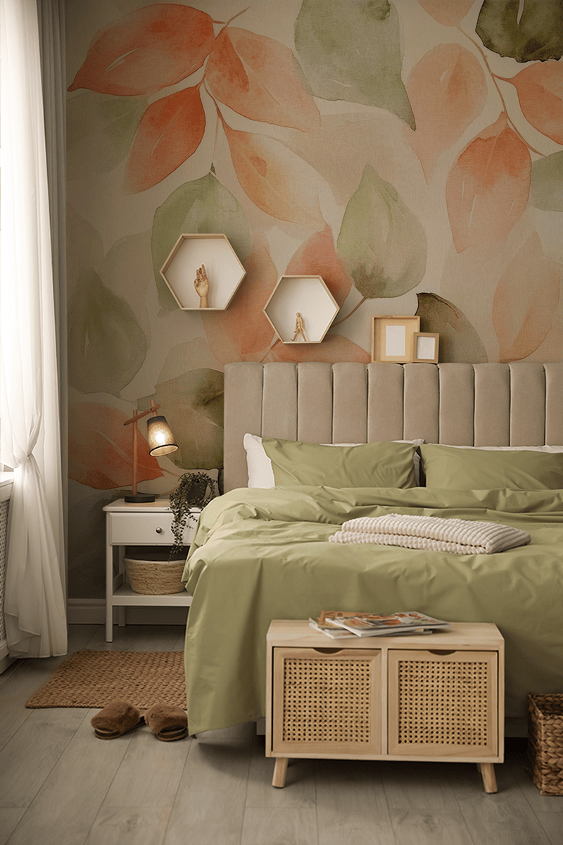 Ożyw swoje wnętrze subtelnym urokiem jesieni dzięki fototapecie „Jesienna Sonata”. Ten akwarelowy wzór inspirowany naturą łączy w sobie pastelowe odcienie pomarańczu, zieleni i beżu, tworząc spokojną, a zarazem wyrazistą kompozycję liści. Całość emanuje ciepłem, miękkością i malarską lekkością, wprowadzając do przestrzeni wyjątkowy klimat sezonowej zadumy i harmonii.