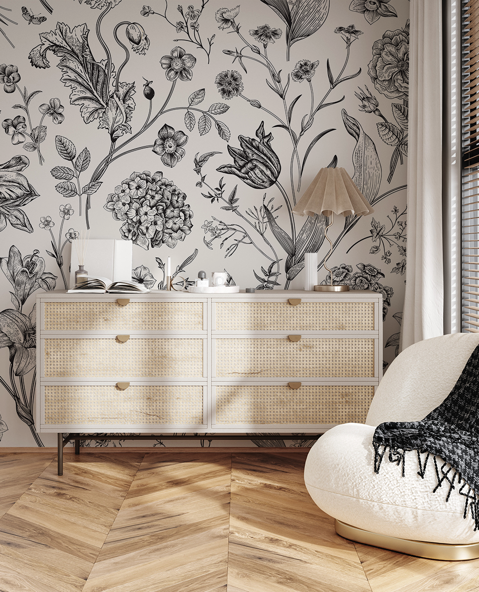 Fototapeta to więcej niż dekoracja – to wyjątkowy detal, który wnosi do wnętrza klasykę, delikatność i niepowtarzalny styl natury.