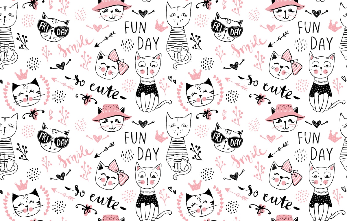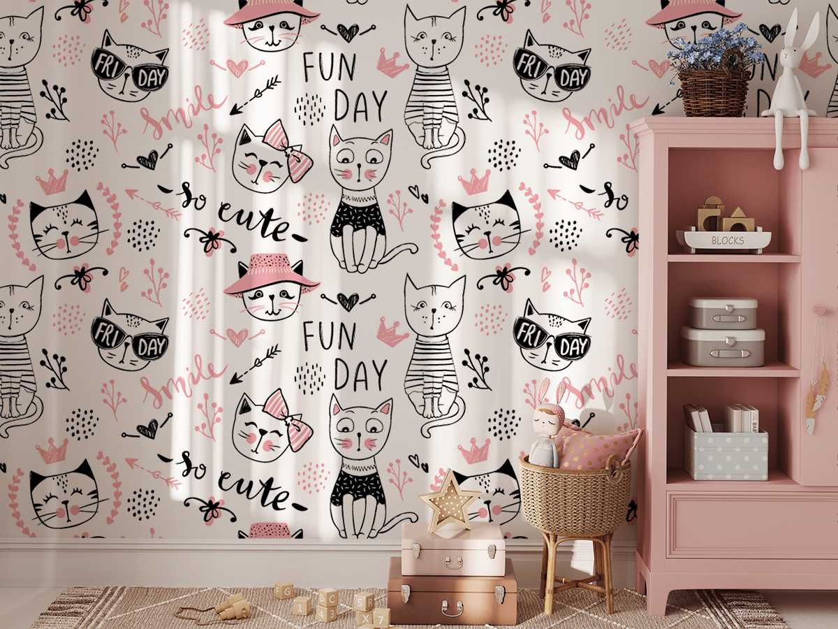 Wprowadź do pokoju swojego dziecka wyjątkowy klimat dzięki fototapecie „Koci Świat Radości”. Ten radosny wzór z zabawnymi, kreskówkowymi kotkami w delikatnych różowo-czarnych odcieniach przywołuje beztroskę i pozytywne emocje, tworząc przyjazną i inspirującą przestrzeń. Sympatyczne koty, napisy i drobne detale sprawiają, że wnętrze staje się pełne uśmiechu i kreatywności.