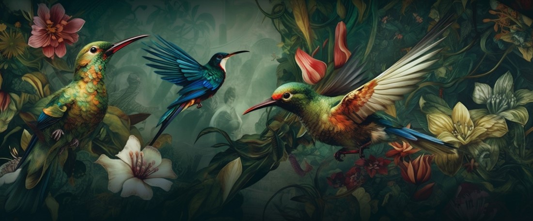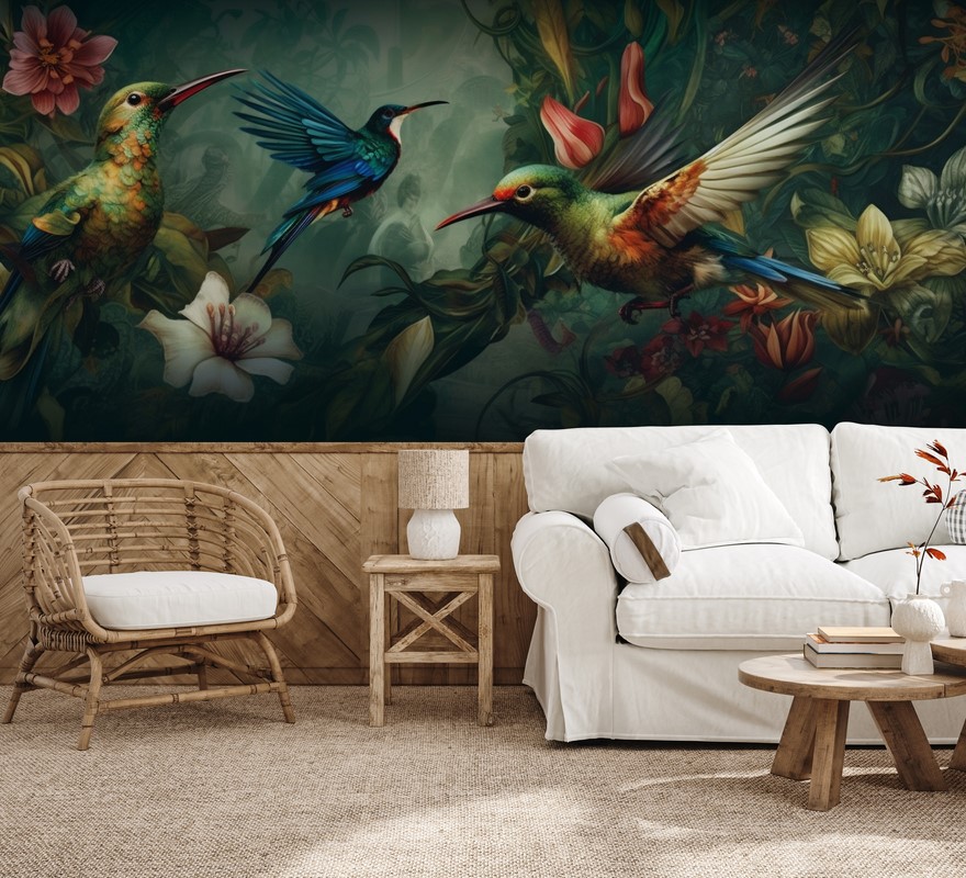 Fototapeta „Kolibrowy Taniec w Dżungli” – egzotyczna lekkość, barwna dynamika i magiczny urok przyrody