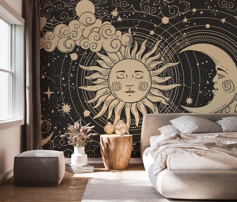 Fototapeta „Kosmiczna harmonia” to niezwykłe połączenie tajemnicy kosmosu i artystycznego designu, wprowadzające do wnętrza magiczny i inspirujący nastrój. Słońce i Księżyc w magicznym wydaniu, eteryczne kolory i harmonijne formy tworzą dekorację, która zachwyca głębią i przestrzenią. Perfekcyjnie sprawdzi się w salonie, sypialni, pokoju młodzieży lub gabinecie – tam, gdzie cenisz elegancję, oryginalność i kreatywną atmosferę. „Kosmiczna harmonia” to fototapeta dla osób poszukujących równowagi między sztuką a przestrzenią kosmiczną, oferując uniwersalny styl i wyjątkowy akcent w aranżacji wnętrza.