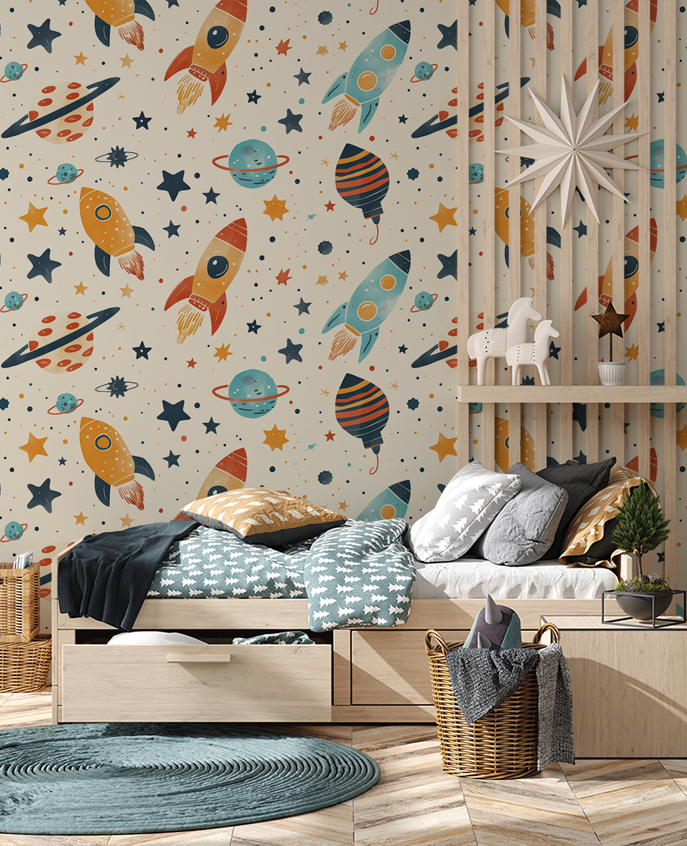 Zabierz swoje dziecko w niezapomnianą podróż poza granice wyobraźni dzięki fototapecie „Kosmiczne Marzenia”. Ten wyjątkowy wzór przenosi do świata planet, rakiet i gwiezdnych przygód, pobudzając ciekawość oraz marzenia o odległych galaktykach. Ciemniejsze, głębokie odcienie błękitu i fioletu zestawione z jasnymi akcentami gwiazd i statków kosmicznych tworzą harmonijną i inspirującą przestrzeń.
