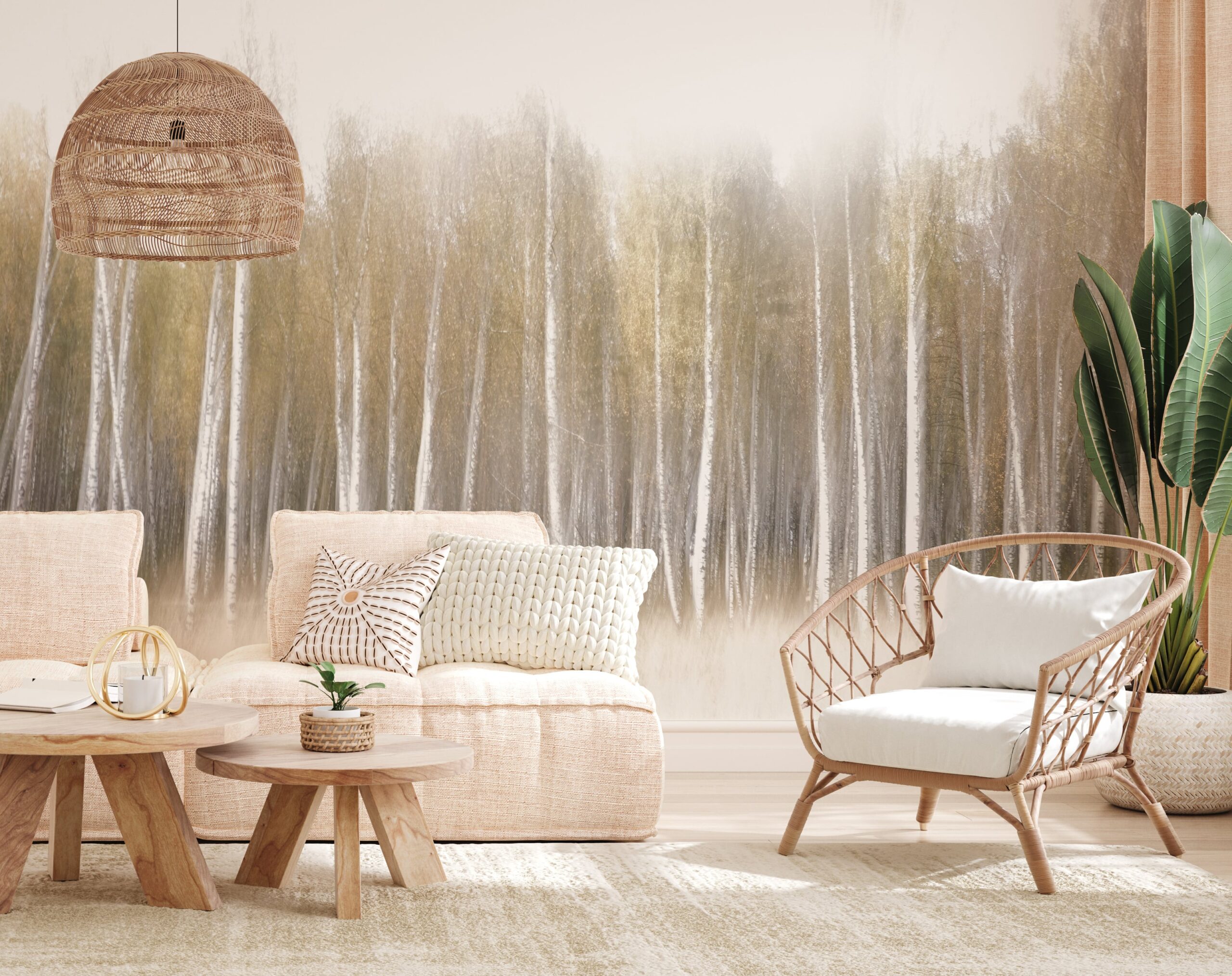 Wprowadź do swojego domu wyjątkowy nastrój dzięki fototapecie „Leśna Poświata”. Ten subtelny, eteryczny motyw brzozowego lasu we mgle tworzy aurę spokoju i tajemnicy, doskonale komponując się z różnorodnymi aranżacjami — od nowoczesnych po rustykalne. Jasne, rozmyte tony oraz naturalne barwy lasu wprowadzają do przestrzeni uczucie lekkości i świeżości.
