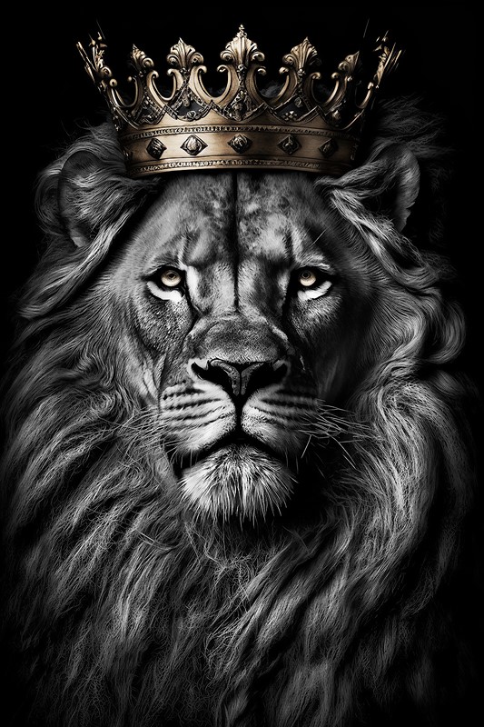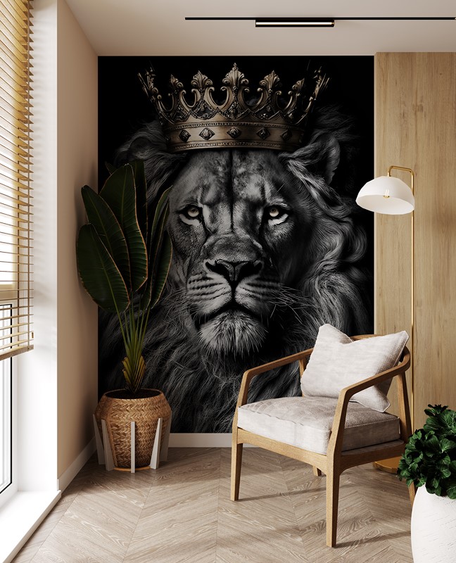 Odmień swoją przestrzeń dzięki fototapecie „Lew w Złotej Koronie”, która emanuje siłą, dostojeństwem i ponadczasową elegancją. Centralnym motywem jest potężny lew o przenikliwym spojrzeniu, ukazany w szlachetnej, czarno-białej tonacji z kontrastującą, złotą koroną – symbolem władzy i odwagi. Całość tworzy wyrazistą, a zarazem wysublimowaną kompozycję.