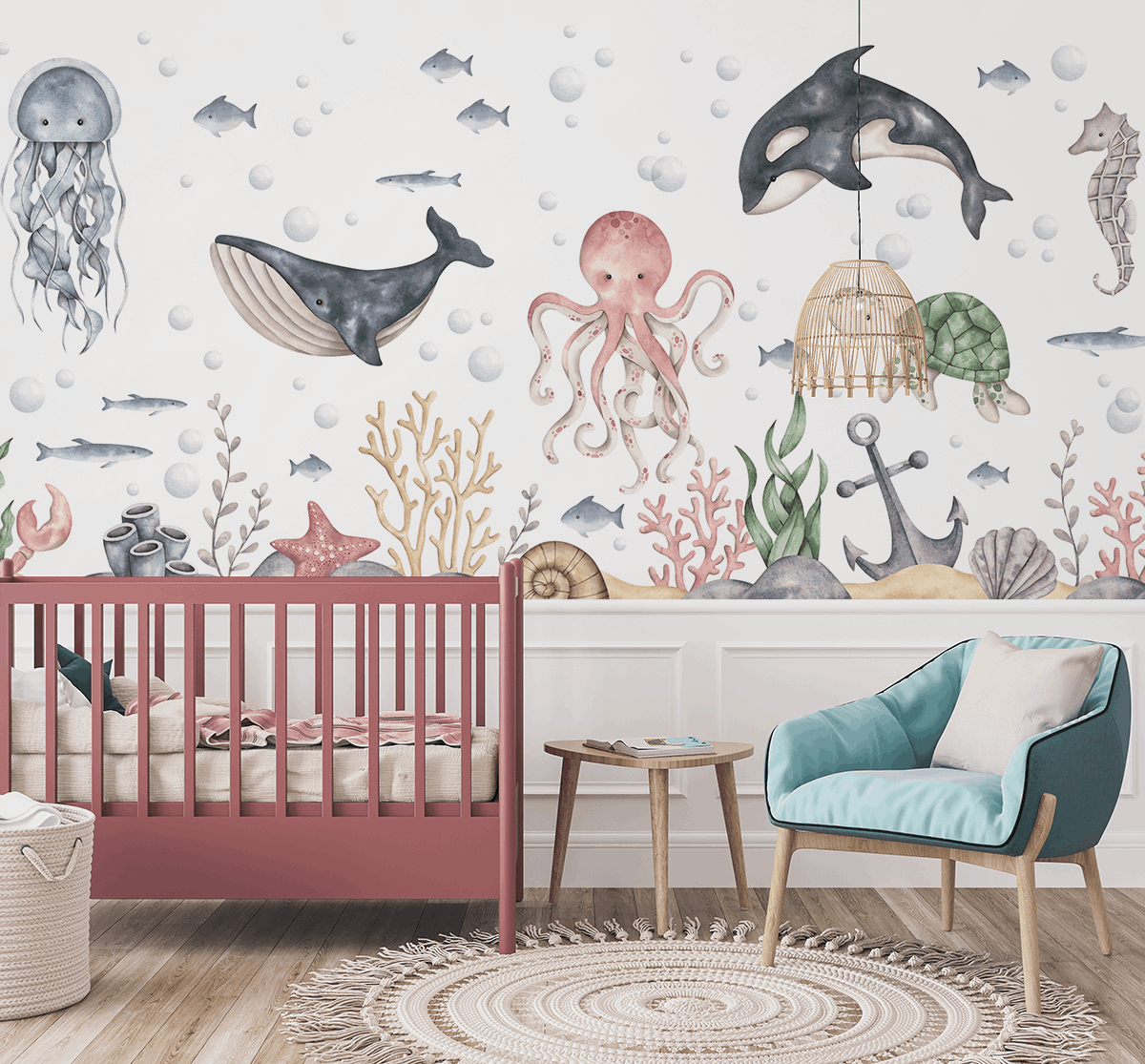 To więcej niż dekoracja – to kolorowa przygoda, która zamienia dziecięcy pokój w bajkową krainę pełną przyjaciół z głębin oceanu.
