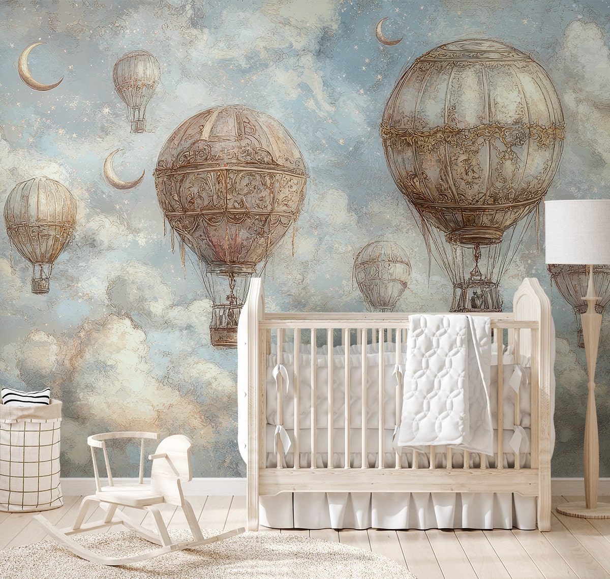 Zapewnij swojemu wnętrzu wyjątkowy klimat dzięki fototapecie „Niebo Balonowych Marzeń”. Ten delikatny, artystyczny motyw z balonami unoszącymi się wśród miękkich obłoków i księżyców przeniesie Cię do świata pełnego spokoju, inspiracji i nieograniczonej wyobraźni. Stonowane, pastelowe barwy tworzą harmonijną przestrzeń, która sprzyja relaksowi i twórczym myślom.