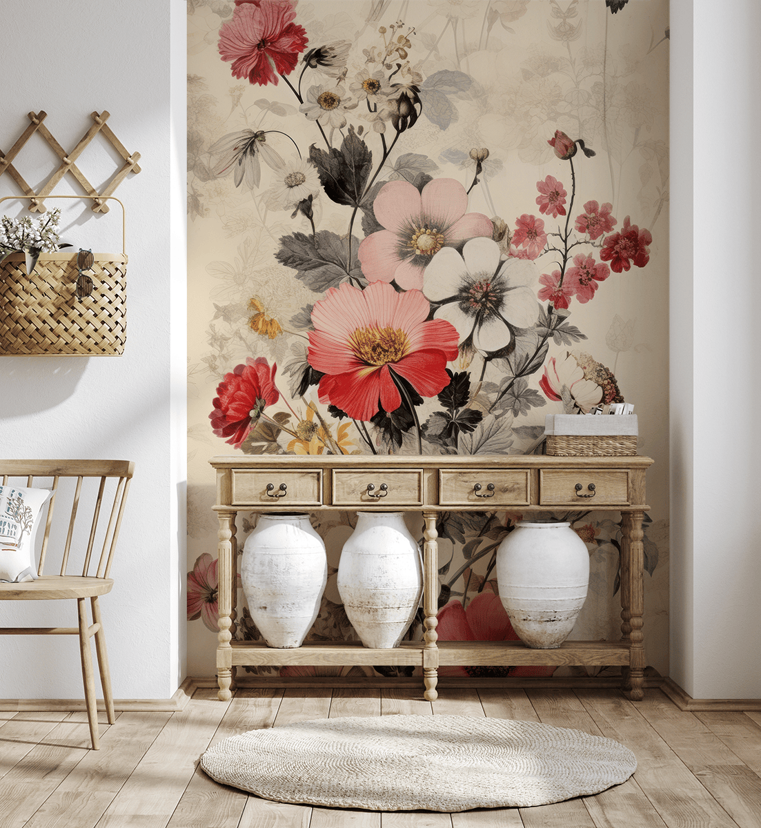 Wprowadź do swojego wnętrza niepowtarzalny urok dzięki fototapecie „Ogród Czasu”. Ten malarski, pełen finezji wzór kwiatowy nawiązuje do klasycznych ilustracji botanicznych, łącząc naturalną ekspresję z subtelną nostalgią. Wyrafinowane detale i harmonijna kompozycja barw sprawiają, że wzór przyciąga uwagę, a jednocześnie zachowuje delikatność i lekkość.