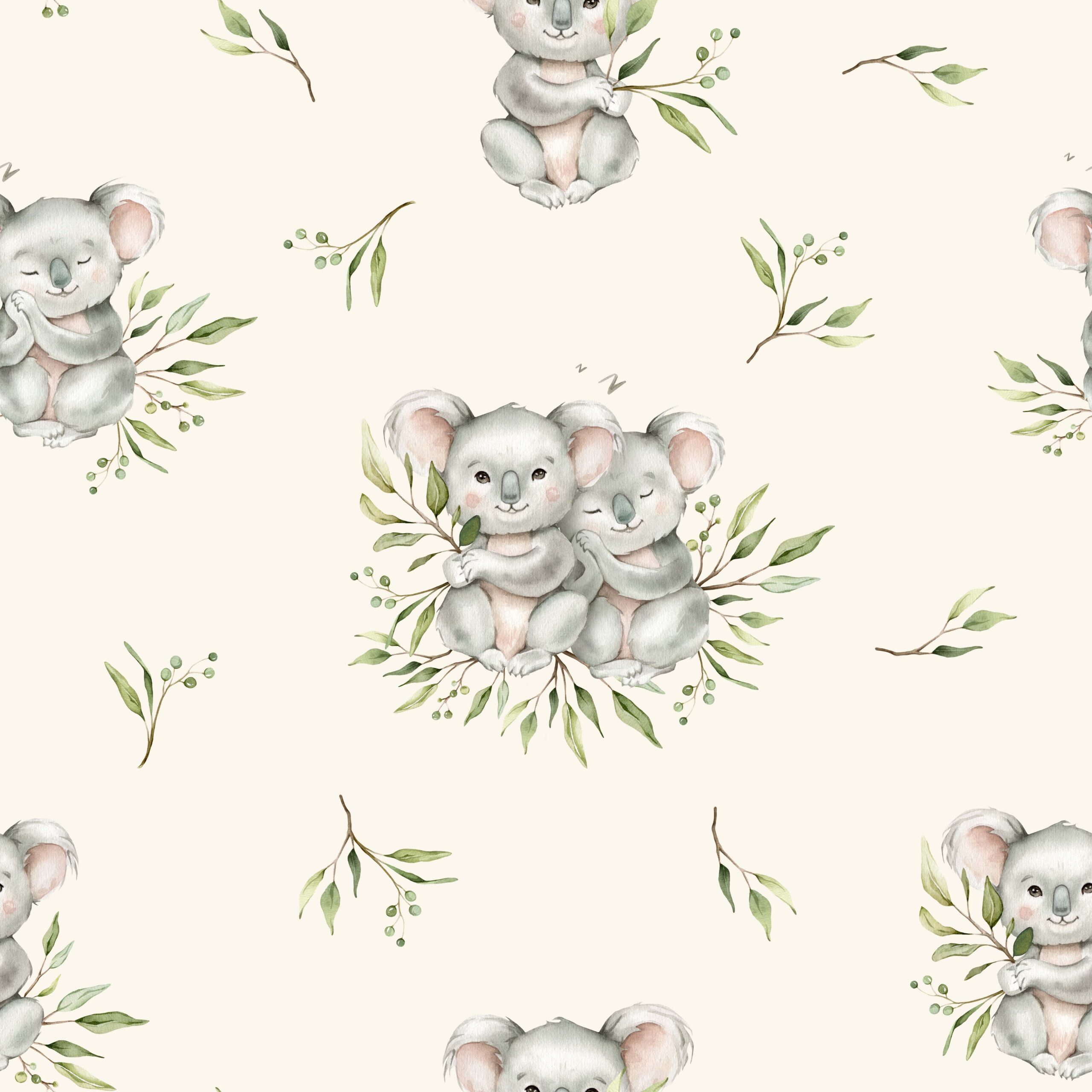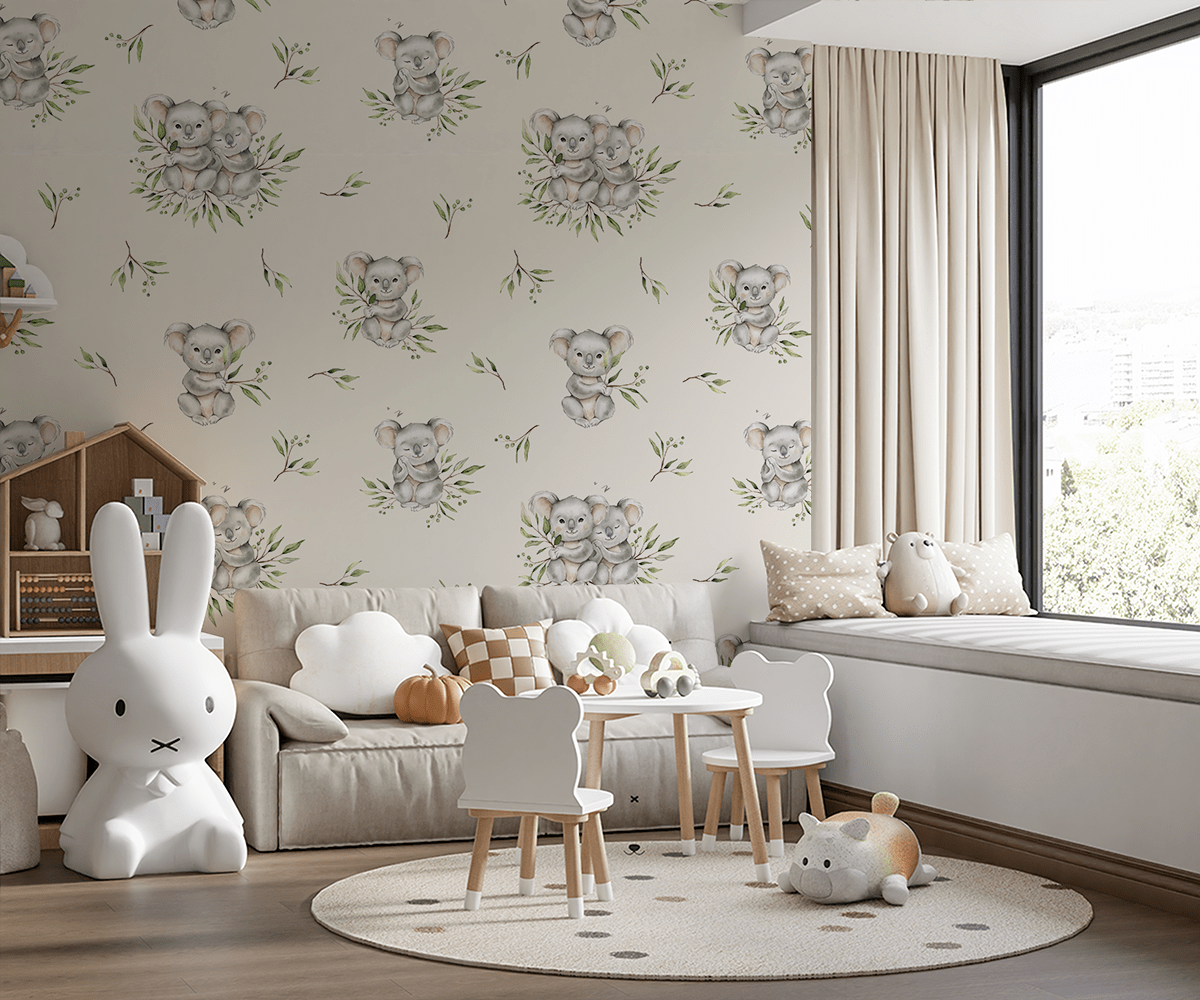 Fototapeta „Sen o Eukaliptusie” – uroczy świat koali, delikatna zabawa i ciepła atmosfera dziecięcego pokoju