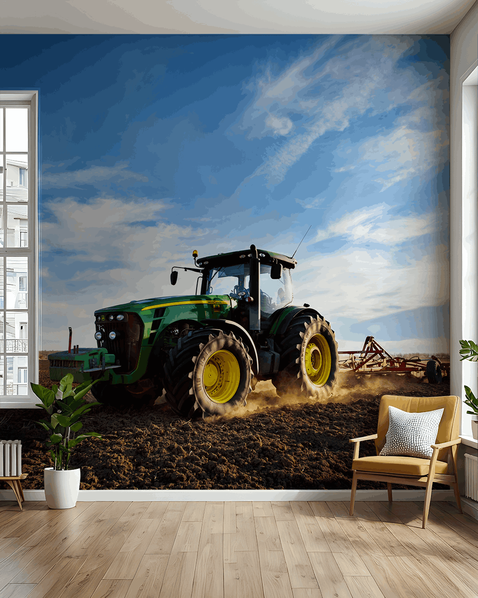 Wprowadź do swojego wnętrza energię i dynamikę dzięki fototapecie „Siła Ziemi”. Przedstawiająca nowoczesny traktor podczas intensywnej pracy na polu, ta realistyczna scena ukazuje nie tylko potęgę maszyn, ale też głęboki związek człowieka z naturą. Połączenie ziemistej palety barw z niebem pełnym ruchu tworzy obraz pełen życia i autentyczności.