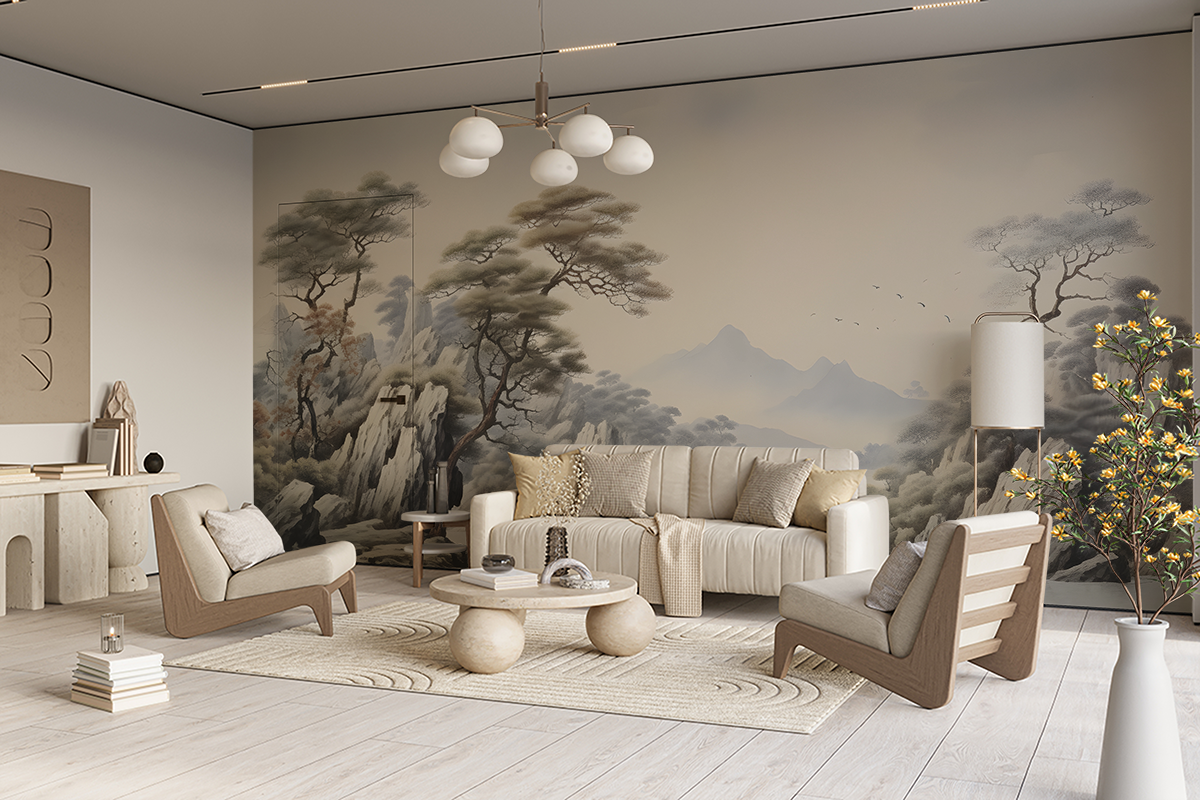 Wprowadź do swojego wnętrza uspokajający klimat natury dzięki fototapecie „Spokój Mglistych Wzgórz”. Delikatny pejzaż gór i drzew spowitych mgłą tworzy wyjątkową kompozycję pełną łagodności i refleksji. Subtelne przejścia tonów oraz miękkie kontury nadają przestrzeni niepowtarzalny, niemal medytacyjny charakter.
