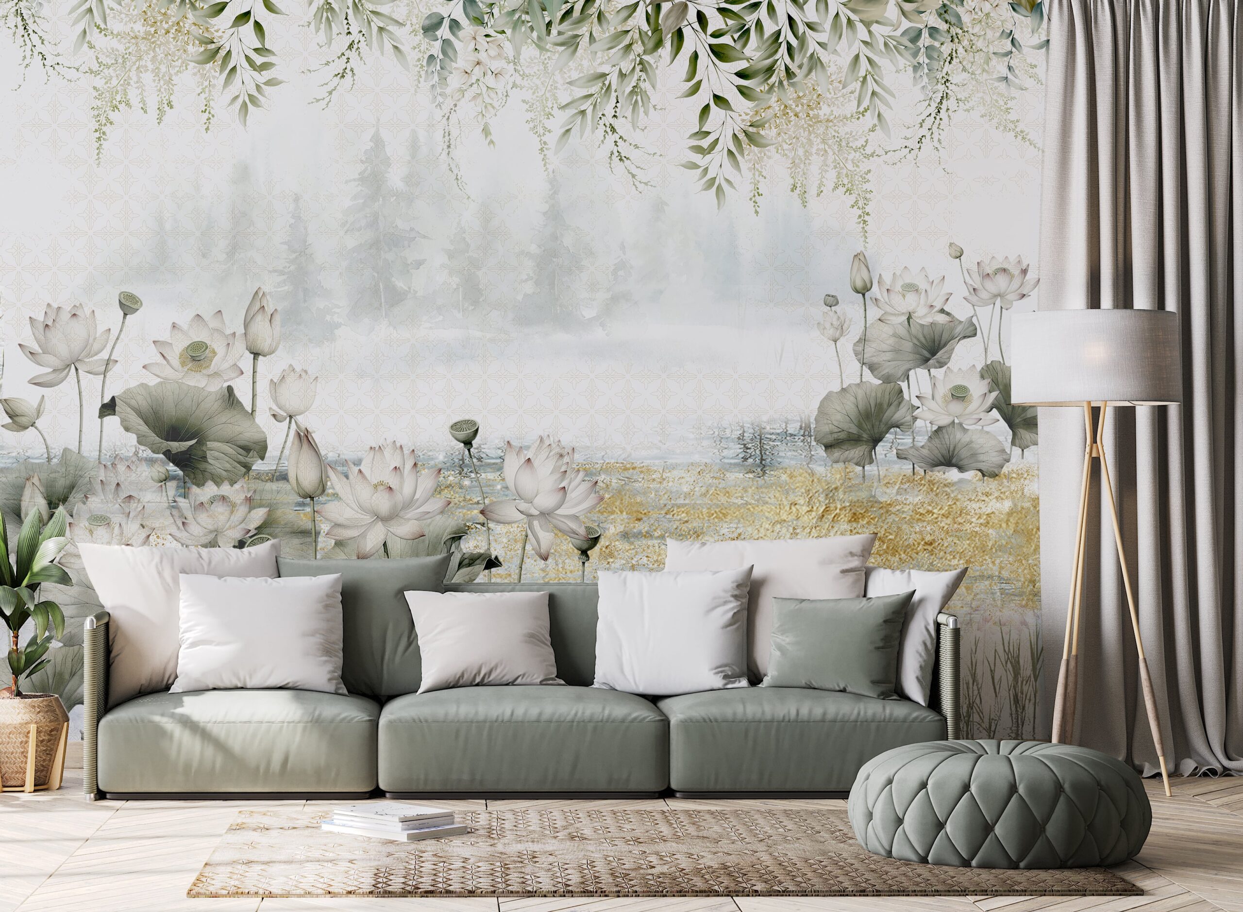 Fototapeta „Staw Lotosów” – subtelna harmonia, naturalna elegancja i spokojna dekoracja wnętrza