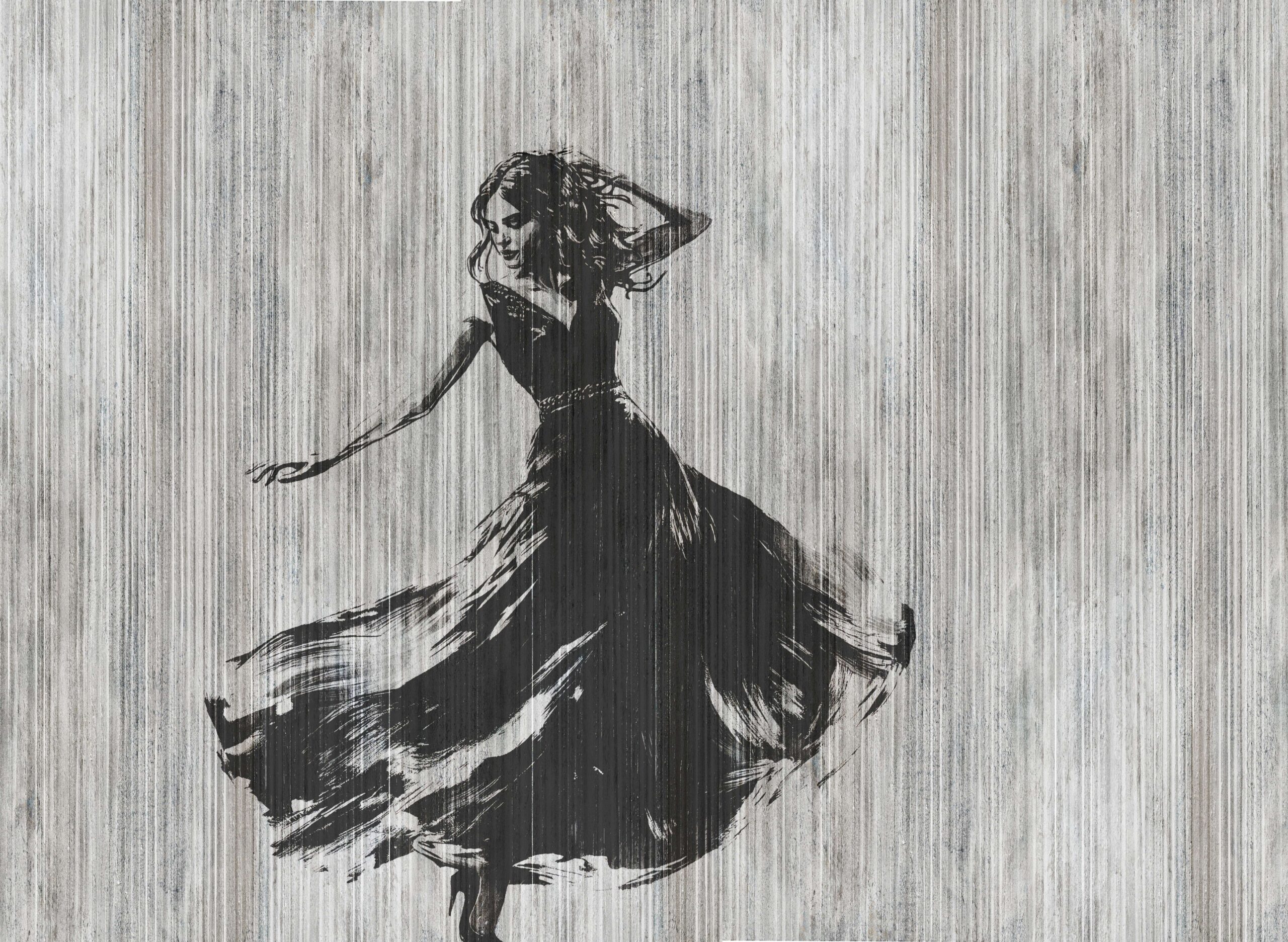 Wprowadź do swojego wnętrza wyjątkowy nastrój dzięki fototapecie „Taniec Cienia”. Ta stylizowana, czarno-biała sylwetka tańczącej kobiety emanuje ruchem i tajemniczością, tworząc niepowtarzalny klimat pełen finezji i wyrafinowania. Delikatne pociągnięcia pędzla i dynamiczny fason sukni sprawiają, że fototapeta doskonale komponuje się zarówno z nowoczesnymi, jak i klasycznymi aranżacjami.