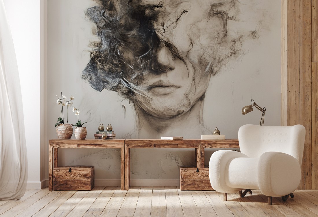 Fototapeta „Upływ jaźni” to artystyczna dekoracja ścienna, która przenosi do wnętrza atmosferę introspekcji, refleksji i delikatnej melancholii. Abstrakcyjny motyw przedstawiający subtelne, rozmyte kształty twarzy w odcieniach szarości, beżu i bieli tworzy wrażenie płynności myśli i emocji. Idealna do salonu, sypialni, gabinetu czy przestrzeni medytacyjnej, gdzie ceniona jest atmosfera spokoju i głębokiej koncentracji. Fototapeta „Upływ jaźni” to propozycja dla osób ceniących minimalistyczny design, artystyczny wyraz i wnętrza sprzyjające wyciszeniu oraz kontemplacji.