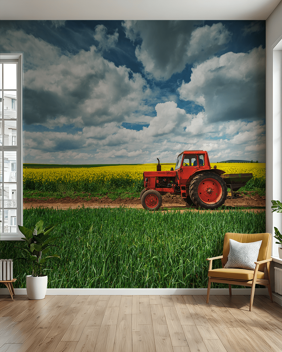 Wprowadź do swojego domu odrobinę wiejskiej sielanki z fototapetą „W Sercu Pola”. Ten pełen uroku obraz przedstawiający malowniczy widok na zieloną trawę, żółte pola i charakterystyczny czerwony traktor doskonale uchwyca spokój i harmonię natury. Obłoki na tle nieba dodają przestrzeni lekkości i otwartości, tworząc atmosferę pełną świeżości i naturalnego piękna.