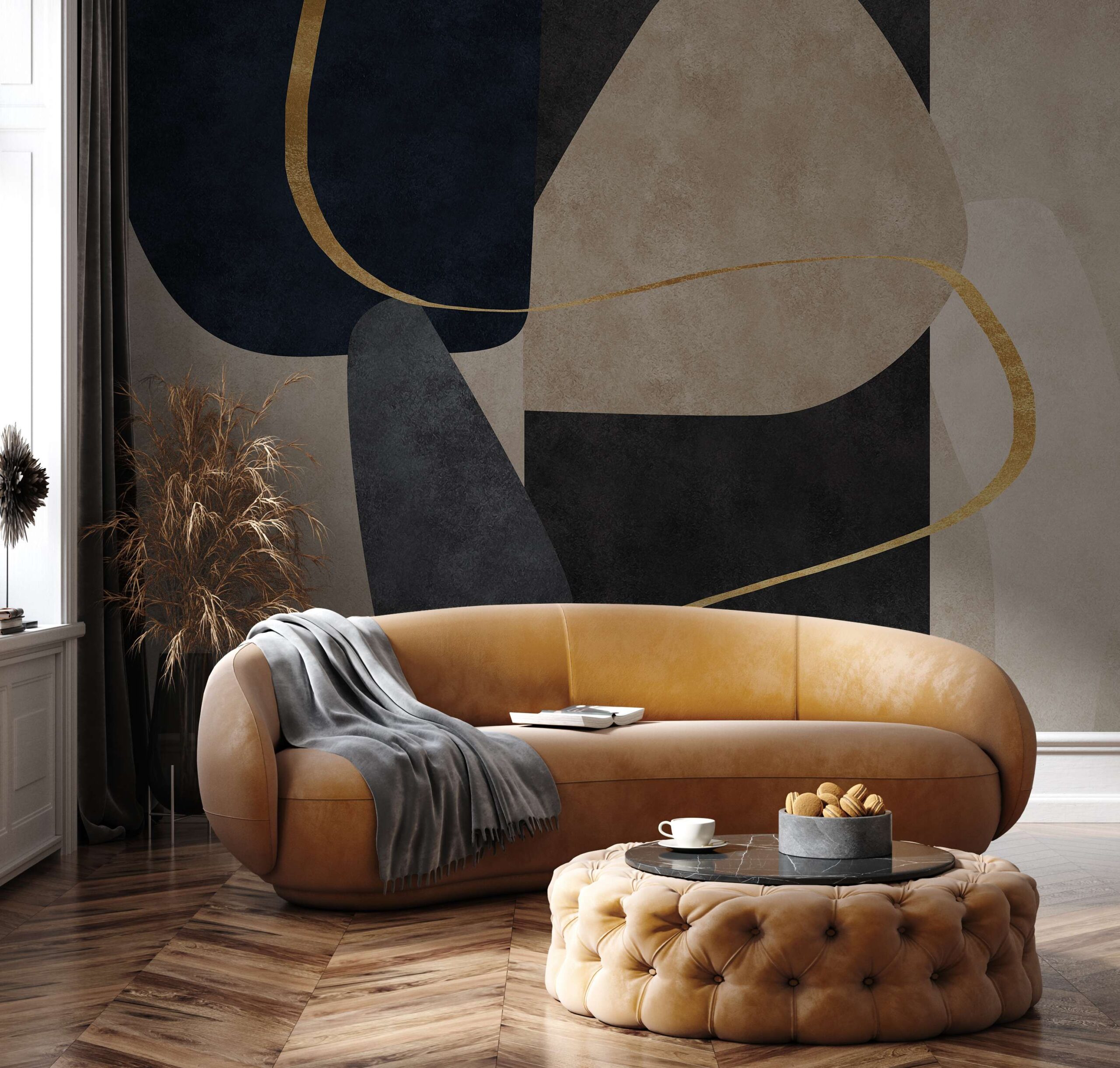 Wprowadź do swojego wnętrza niepowtarzalny klimat dzięki fototapecie „Wędrująca Linia”. Ta artystyczna kompozycja łączy geometryczne kształty z delikatnymi złotymi liniami, tworząc harmonijną i nowoczesną dekorację, która wzbogaci każdą przestrzeń. Neutralna paleta barw z akcentami złota wprowadza do pomieszczenia wyrafinowany i spokojny nastrój, idealny do salonu, gabinetu czy sypialni.