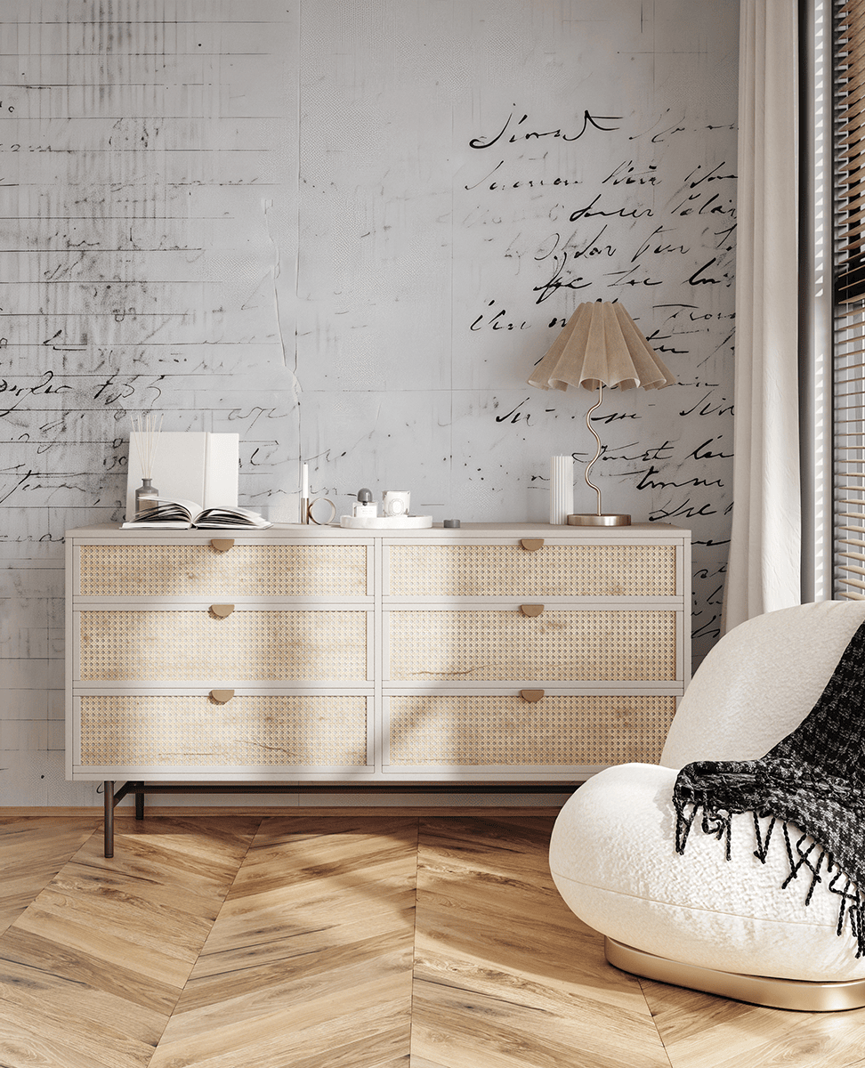 Wprowadź do swojego wnętrza nutę tajemnicy i literackiego piękna dzięki fototapecie „Zapomniane Strony”. Ten subtelny, czarno-biały wzór inspirowany starymi rękopisami i pożółkłymi kartami z przeszłości emanuje autentycznym klimatem minionych epok. Delikatna kaligrafia i faktura postarzanego papieru tworzą unikalną kompozycję pełną klasy i melancholii.