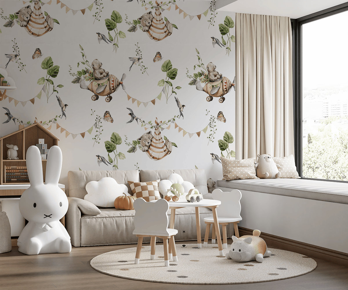 Fototapeta „Zielony Zakątek Misia” – pełna przygód, ciepła i radosna ozdoba dziecięcego świata