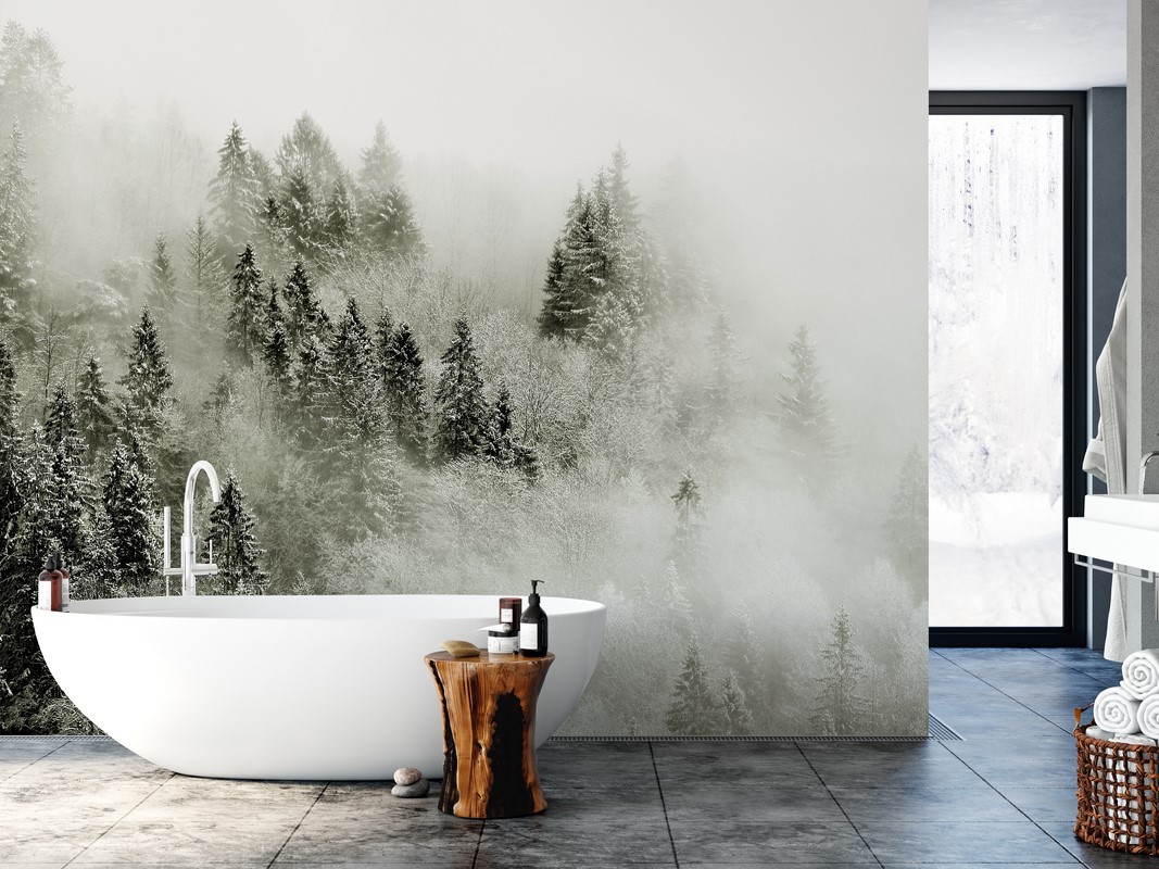 Fototapeta „Zimowy las w mgłach” to dekoracja, która przenosi do wnętrza wyjątkowy klimat ciszy, magii i nieuchwytnej tajemnicy natury. Delikatnie rozświetlony przez światło świtu las pokryty mgłą przywołuje wrażenie immersji w zimowy krajobraz — drzewa ledwo zarysowane wśród łagodnych, pastelowych tonów. Przestrzeń wypływa z mglistych konturów, tworząc atmosferę kontemplacji i wyciszenia, idealną do salonu, sypialni, gabinetu czy przestrzeni wellness. Tapeta oddaje naturalną głębię pejzażu i wprowadza do wnętrza subtelną przestronność i elegancję. W aranżacjach skandynawskich, minimalistycznych czy rustykalnych – stanowi wyjątkowy akcent sprzyjający relaksowi i estetycznej równowadze