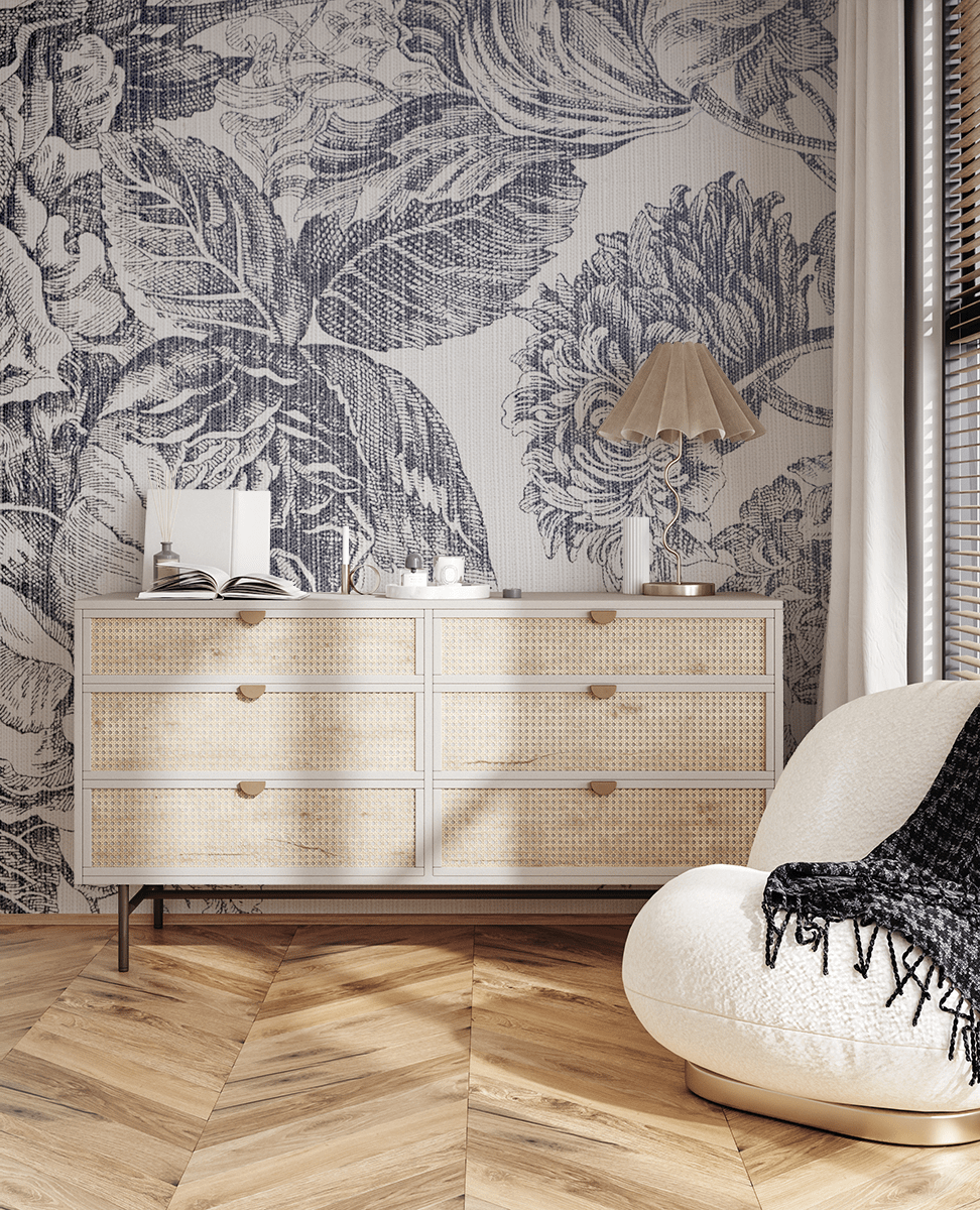 Ta fototapeta to coś więcej niż tylko dekoracja – to artystyczny akcent, który zmienia przestrzeń, wprowadzając do niej zmysłowy urok roślinnego świata, pełnego delikatności i klasy.
